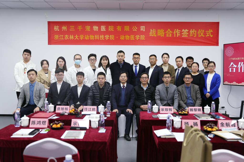 近日,动科动医学院与杭州三千宠物医院有限公司在三千宠医余杭旗舰店签署捐赠和战略合作协议。三千宠医向动科动医学院捐赠二十五万元设立“三千梦想奖学金”,捐赠四万美元设立“三千DVM奖学金”,支持动科动医学院办学。三千宠医董事长钱江鹏,校党委委员、动科动医学院院长宋厚辉,校友办主任、校教育基金会秘书长杨黎明出席活动。
