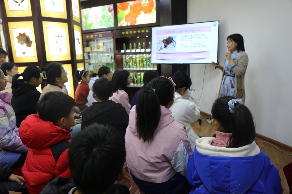 在药香扑鼻的中药标本馆里,40多名孩子们被300多种中药饮片标本、100多种浸渍标本和几十种蜡叶标本所吸引,迫不及待地开始辨认识别各种中药。迎面而来的古风和悠扬隽雅的古典音乐相互交织碰撞,伴随着沁人心脾的药香,很快就把同学们带入到了求知的氛围中。