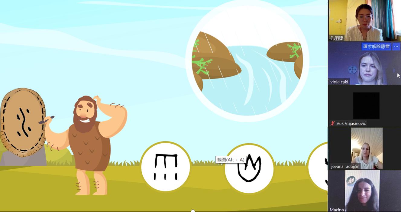 课堂上,诺大孔院教师为汉语初学者介绍了汉语拼音、汉字、语法等基础语言知识,并通过展示汉字演变过程来增进学生对汉语的理解。在师生问答环节,学生们表示,汉语听起来像唱歌一样音调起伏有韵律,他们都对汉语和中国文化充满浓厚兴趣。值得一提的是,一位名叫乌珂·乌雅西诺维琪(Vuk Vujasinović) 的同学兴奋地分享了塞尔维亚团队在北京冬奥会出场的视频,引起了大家的积极讨论。乌珂·乌雅西诺维琪还表示,希望自己可以学好汉语,更多了解中国,将来有机会以翻译的身份出现在中塞友谊交流的现场。